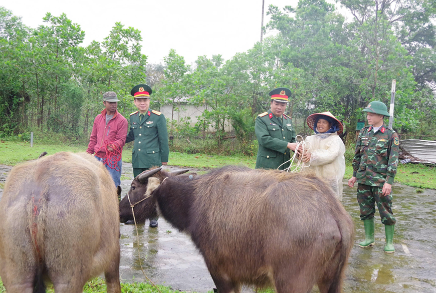 | Đoàn KT-QP 92 trao trâu giống sinh kế cho bà con nhân dân. |