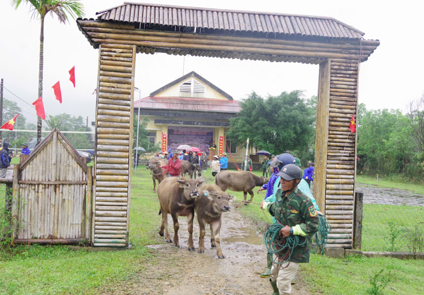 Quá trình bàn giao con giống tại trung tâm xã A Lưới 4 được Đoàn KT-QP 92 phối hợp chặt chẽ với chính quyền địa phương tổ chức công khai, minh bạch. Các hộ dân được hướng dẫn kiểm tra tình trạng sức khỏe của trâu ngay tại chỗ, ký cam kết chăm sóc, nuôi dưỡng đúng kỹ thuật nhằm phát huy hiệu quả lâu dài.
