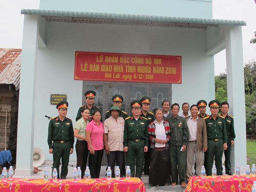 Theo Thượng tá Nguyễn Minh Mạnh, Phó chính ủy Lữ đoàn 198, chỉ tính từ đầu năm 2015 đến nay, đơn vị đã xây dựng và trao 5 nhà tình nghĩa tặng người có công; hỗ trợ công xây dựng 3 căn nhà đại đoàn kết. "Chúng tôi xác định: Giúp dân là giúp mình. Vì vậy, cán bộ, chiến sĩ Lữ đoàn 198 tiếp tục phấn đấu, sáng tạo tiến hành nhiều biện pháp giúp nhân dân hiệu quả nhất trong thời gian tới", Thượng tá Nguyễn Minh Mạnh khẳng định.
