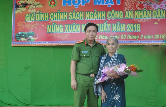 Bà Phan Thị Năm trong buổi họp mặt gia đình người có công ngành Công an nhân dân huyện Đức Hòa (Long An) năm 2018. |