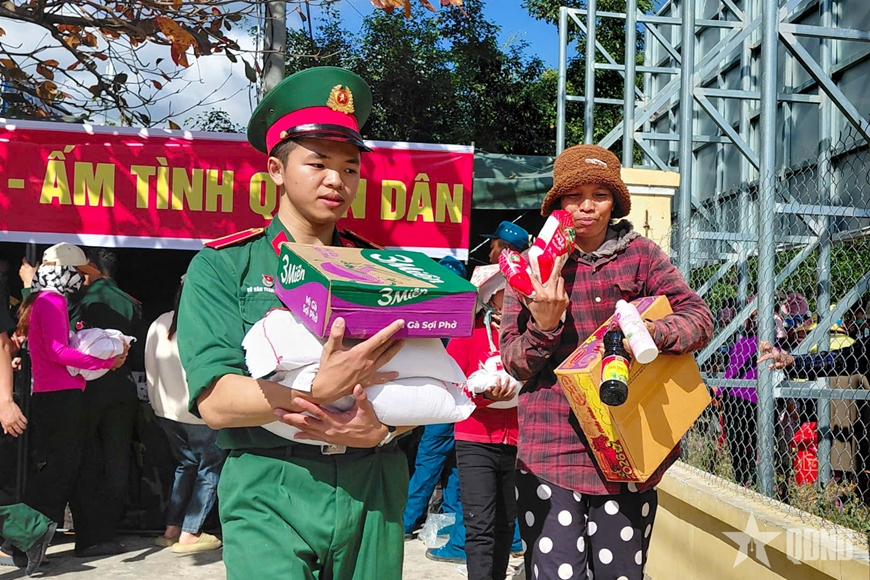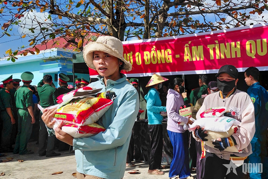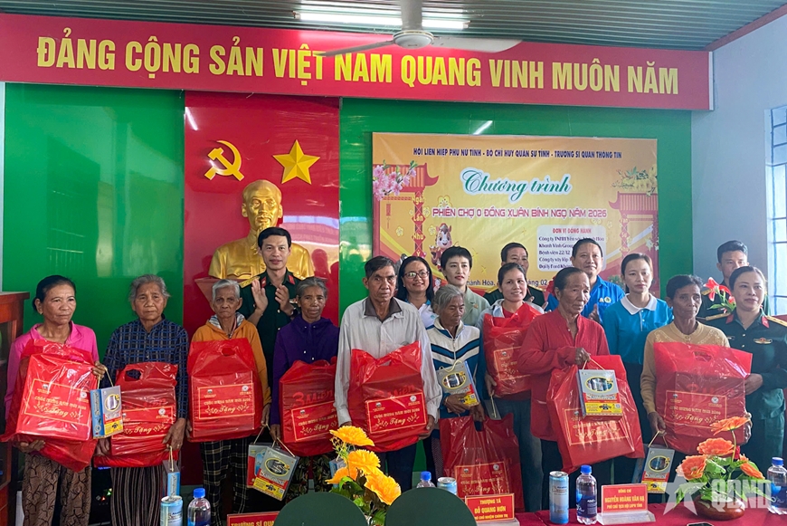 Tại phiên chợ, hàng trăm suất quà Tết gồm gạo, dầu ăn, nước mắm, mì tôm, nhu yếu phẩm và nhiều mặt hàng thiết yếu đã được Bộ CHQS tỉnh Khánh Hòa chuẩn bị chu đáo, trao tận tay người dân. Mỗi phần quà tuy không lớn về giá trị vật chất nhưng chứa đựng nghĩa tình sâu nặng của cán bộ, chiến sĩ LLVT tỉnh đối với nhân dân vùng đồng bào dân tộc thiểu số, vùng còn nhiều khó khăn.