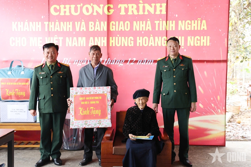Ngày 30-12, phường Uông Bí (Quảng Ninh) tổ chức Chương trình khánh thành và bàn giao nhà tình nghĩa tặng Bà mẹ Việt Nam anh hùng Hoàng Thị Nghi, trú tại khu Thanh Sơn 10, phường Uông Bí, tỉnh Quảng Ninh. Thượng tá Phạm Bình Quân, Phó chủ nhiệm Chính trị Bộ CHQS tỉnh; Thượng tá Đỗ Xuân Cảnh, Chính ủy Ban Chỉ huy phòng thủ khu vực 5 - Quảng Yên đến dự.