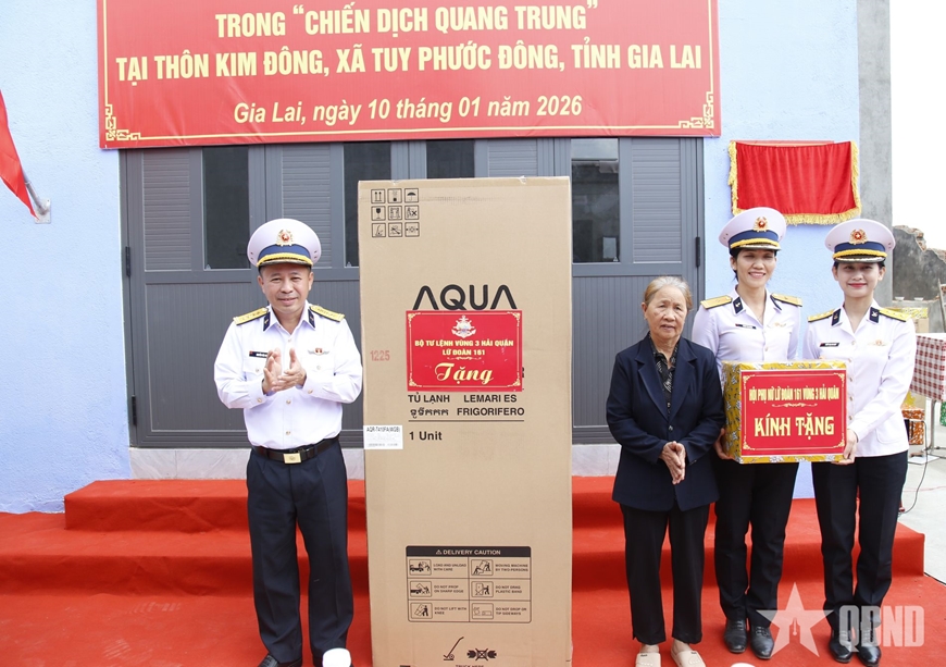 Đến nay, Vùng 3 Hải quân đã hoàn thành xây mới, bàn giao 6 ngôi nhà cho nhân dân trên địa bàn tỉnh Gia Lai trong “Chiến dịch Quang Trung”, góp phần giúp các gia đình sớm ổn định cuộc sống, đón năm mới 2026 và Tết Nguyên đán Bính Ngọ.