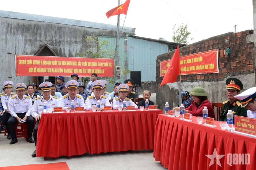 Chuẩn đô đốc Đỗ Văn Yên, Phó chính ủy Quân chủng Hải quân dự và chủ trì buổi lễ. Tham dự buổi lễ có đại diện lãnh đạo các cơ quan chức năng Quân chủng Hải quân; Đại tá Phạm Đình Thành, Phó chính ủy Vùng 3 Hải quân; lãnh đạo, chỉ huy các cơ quan, đơn vị trực thuộc Vùng 3 Hải quân; đại diện cấp ủy, chính quyền địa phương, lực lượng vũ trang trên địa bàn cùng các gia đình được hỗ trợ xây dựng nhà ở.
