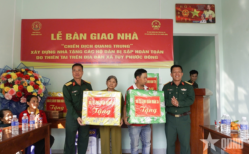 Đến dự bàn giao 8 ngôi nhà tại xã Tuy Phước Đông, tỉnh Gia Lai, Thiếu tướng Nguyễn Trần Long, Phó chính ủy Quân đoàn 34 đã ghi nhận, biểu dương các lực lượng thực hiện “Chiến dịch Quang Trung” của Quân đoàn; đồng thời, mong muốn các gia đình được Nhà nước, chính quyền địa phương và Quân đoàn 34 hỗ trợ xây dựng nhà tiếp tục nỗ lực vượt qua khó khăn, sớm ổn định sản xuất và cuộc sống.