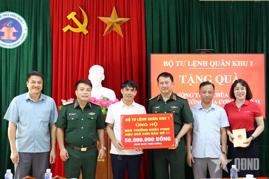 Thiếu tướng La Công Phương cho biết, Đảng ủy, Bộ tư lệnh Quân khu 1, cán bộ, chiến sĩ LLVT Quân khu chia sẻ sâu sắc với những khó khăn, vất vả của các trường trên địa bàn tỉnh Thái Nguyên chịu ảnh hưởng nặng nề của hoàn lưu bão số 11 gây ra trong thời gian qua; mong muốn đóng góp công sức, hỗ trợ kịp thời tới các trường, góp phần giúp nhà trường sớm ổn định.
