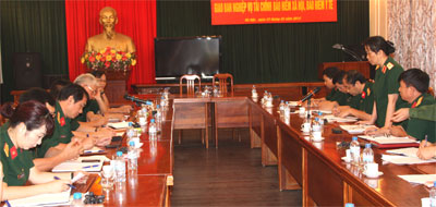 Giao ban nghiệp vụ tài chính giữa BHXH Bộ Quốc phòng và Cục Tài chính, Bộ Quốc phòng nhằm tăng cường hiệu quả quản lý BHXH, BHYT trong quân đội. Ảnh: HUY HOÀNG