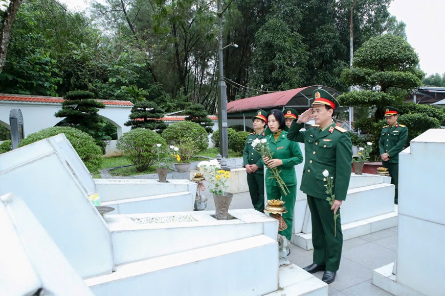 | Thiếu tướng Hoàng Minh Sơn, Tư lệnh Binh chủng Đặc công và đoàn công tác dâng hoa, dâng hương tri ân công lao các Anh hùng liệt sĩ ở Nghĩa trang Liệt sĩ quốc gia Vị Xuyên. |