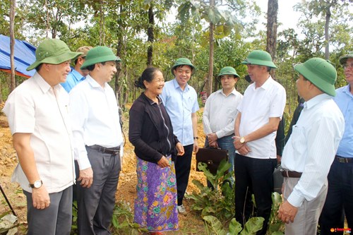 Bà Tiêng Khăm (áo đen), ở bản Bừng Thạ Lê, huyện Phà Lan Xai (Sa Vẳn Na Khẹt, Lào) cung cấp thông tin giúp Đội TKQT HCLS 584, Bộ CHQS tỉnh Quảng Trị tìm thấy 11 HCLS. Ảnh: LÊ THẮNG. |