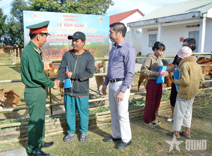 Triển khai thực hiện Chương trình mục tiêu quốc gia, Sư đoàn 10 xây dựng Dự án “Phát triển kinh tế, xã hội - mô hình bộ đội gắn với dân bản vùng đồng bào dân tộc thiểu số và miền núi năm 2025” và mô hình “Chăn nuôi bò sinh sản”. Phối hợp với cấp ủy, chính quyền địa phương khảo sát, lựa chọn 65 gia đình thuộc hộ nghèo, cận nghèo của xã Ia Chim tham gia Dự án và mỗi hộ được trao một cặp bò giống.