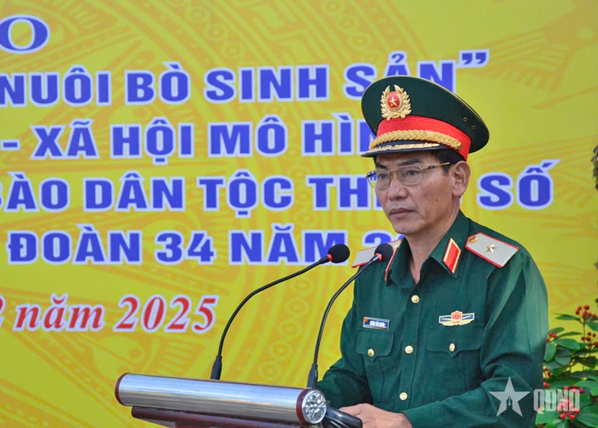 Phát biểu chỉ đạo, Thiếu tướng Dương Văn Quang, Phó tư lệnh Quân đoàn 34, biểu dương công tác lãnh đạo, chỉ đạo, triển khai Dự án chặt chẽ, hiệu quả của Sư đoàn 10 và chúc mừng 65 hộ gia đình được trao tặng bò giống, vật tư.
