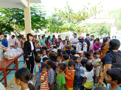 Phát quà Trung thu cho các cháu bé.