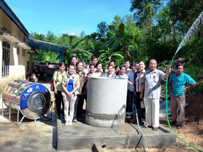 Đại diện Hội Ái mộ Yersin và giáo viên Trường Hoa Hồng vui mừng có nước sạch.