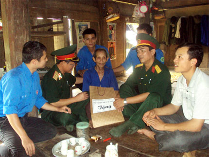 QĐND Online - Thiết thực kỷ niệm 66 năm Ngày Thương binh-Liệt sĩ (27-7-1947 / 27-7-2013), trong hai ngày 25 và 26-7, Học viện Kỹ thuật quân sự đã cử đoàn công tác đi thăm hỏi, tặng quà một số gia đình chính sách thuộc huyện Tân Lạc, tỉnh Hòa Bình, đồng thời tổ chức cho 180 sinh viên tình nguyện đang tham gia chiến dịch “Mùa hè tình nguyện năm 2013” tại các xã Định Trung (Vĩnh Yên, Vĩnh Phúc); Quyết Chiến (Tân Lạc, Hòa Bình) và Minh An (Văn Chấn, Yên Bái) đến thăm hỏi, tặng 23 suất quà và lao động giúp các gia đình chính sách trên địa bàn.