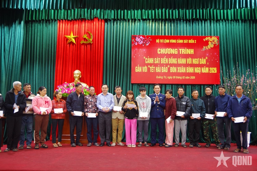 Ngày 9-2, tại Quảng Trị, Hải đội 202 (Vùng Cảnh sát biển 2) phối hợp với Đảng ủy, HĐND, UBND xã Nam Cửa Việt tổ chức chương trình “Cảnh sát biển đồng hành với ngư dân”, gắn với “Tết Hải đảo” đón xuân Bính Ngọ năm 2026 trên địa bàn.