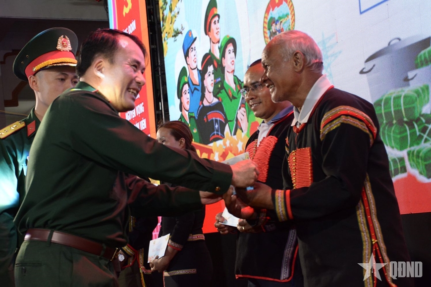| Lãnh đạo Quân khu 5 trao quà Tết cho các già làng, trưởng thôn (buôn), người có uy tín. |