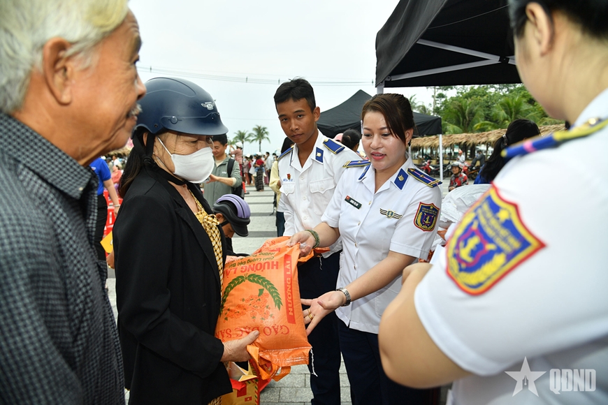 Tại phiên chợ, cán bộ, hội viên Hội Phụ nữ Phòng Tham mưu, Bộ tư lệnh Vùng Cảnh sát biển 4 tích cực phối hợp chuẩn bị các mặt hàng thiết yếu phục vụ ngày Tết như gạo, mì, nước mắm, dầu ăn, gia vị, bánh ngọt, nước giải khát, trà... Mỗi phần quà được trao đi là một lời chúc chân thành, động viên bà con.