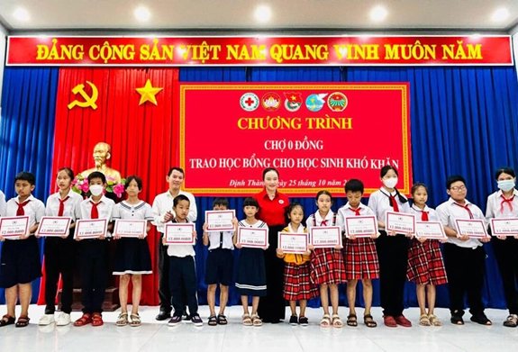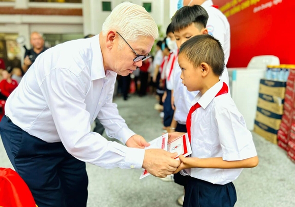 Lãnh đạo Tỉnh ủy Bình Dương đồng hành cùng hoạt động chữ thập đỏ, trao quà đến học sinh hoàn cảnh khó khăn. |