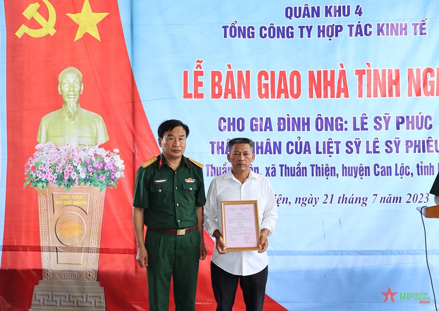 Dịp kỷ niệm 76 năm Ngày Thương binh-Liệt sĩ (27-7-1947 / 27-7-2023), đi đến các miền quê trên địa bàn Quân khu 4, nhiều hoạt động tri ân các đối tượng người có công với cách mạng được các ban, ngành, đoàn thể địa phương tổ chức hết sức ý nghĩa, thiết thực như: Xây tặng Nhà tình nghĩa; thăm, tặng quà các đối tượng chính sách… Bên cạnh đó, các cơ quan, đơn vị còn tổ chức các hoạt động hỗ trợ, tri ân bằng việc làm cụ thể như: Trao sổ tiết kiệm, giống vốn, công cụ sản xuất tặng các đối tượng chính sách; chăm sóc, phụng dưỡng Bà mẹ Việt Nam Anh hùng; nhận đỡ đầu, tạo công ăn việc làm cho con thương binh, liệt sĩ…