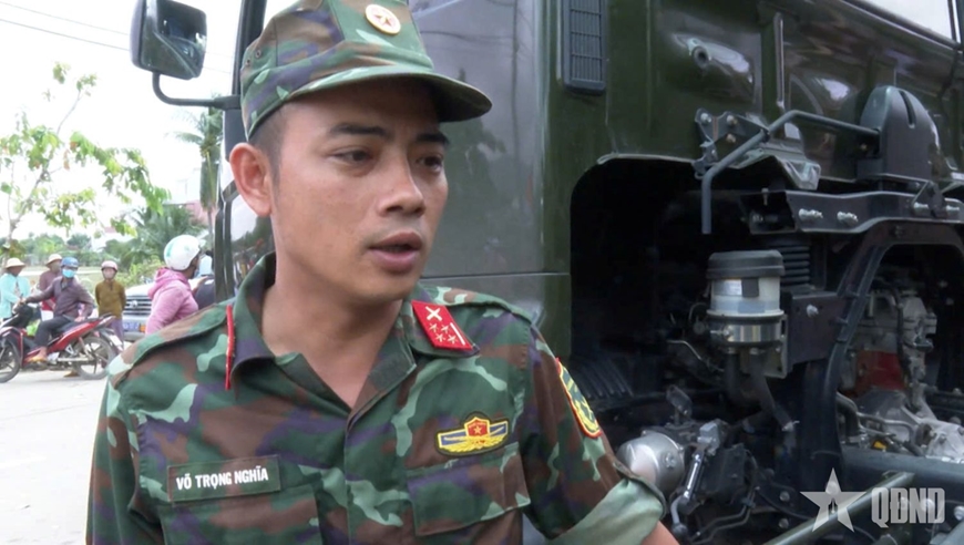| Đại úy QNCN Võ Trọng Nghĩa, lái xe, Bộ CHQS tỉnh Gia Lai chia sẻ với phóng viên. |
