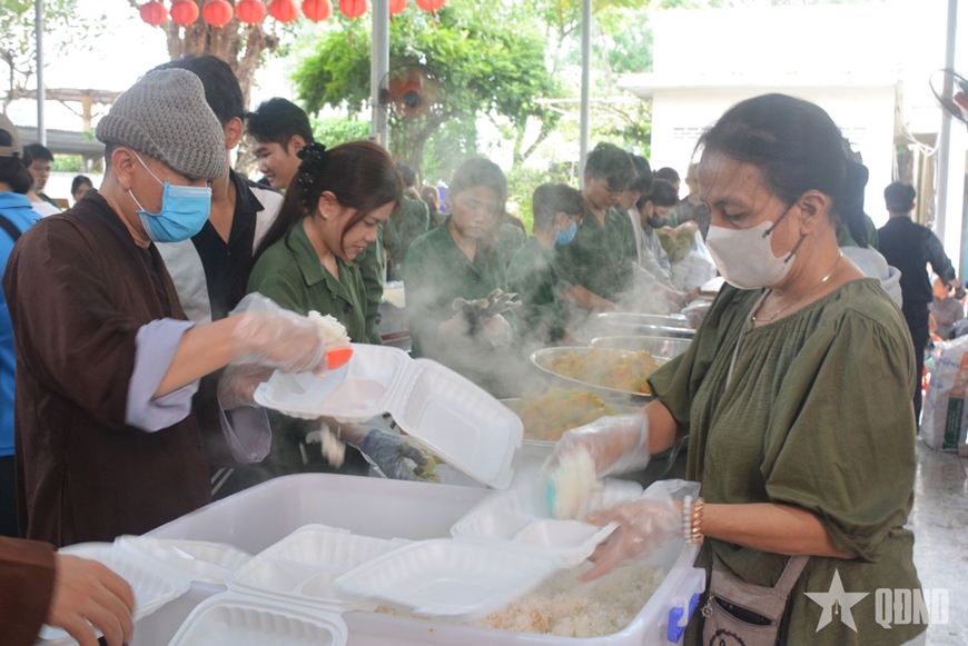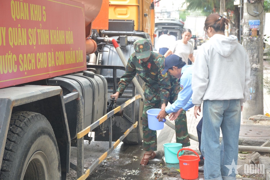 | Bộ đội cấp nước sạch cho người dân ở đường Nguyễn Đình Chiểu, phường Bắc Nha Trang và nấu ăn tại Trường Đại học Nha Trang. |