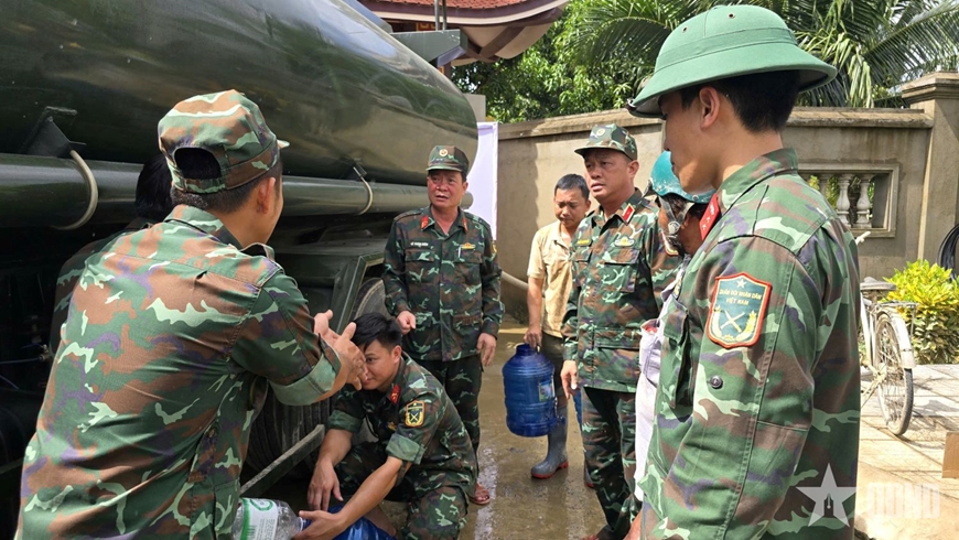 Để chế biến, nấu nướng hàng nghìn suất ăn, cần lượng nước sạch lớn, trong khi lũ về địa bàn khiến nguồn nước bị ô nhiễm. Trước tình hình đó, Bộ tư lệnh Quân khu 5 đã kịp thời điều động xe bồn của Bộ CHQS tỉnh Khánh Hòa và Bộ CHQS tỉnh Gia Lai cung cấp nước sạch phục vụ nhân dân và lực lượng đảm nhiệm công tác hậu cần.