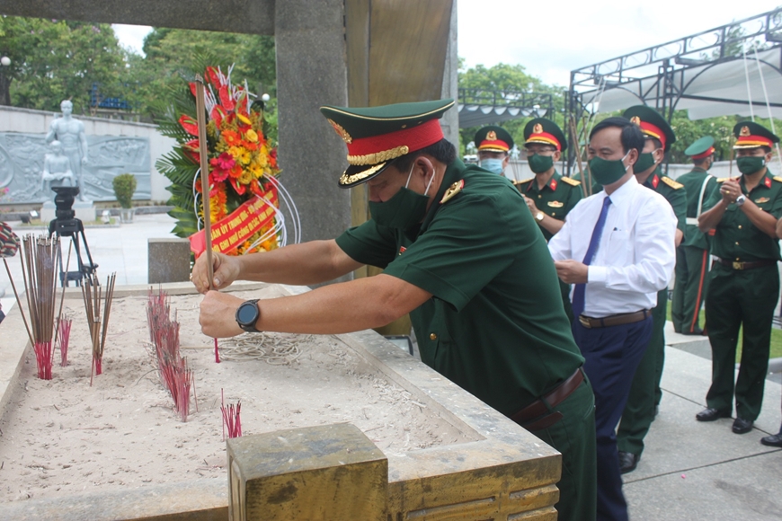 | Đoàn công tác thắp hương, tưởng nhớ, tri ân các Anh hùng liệt sĩ. |