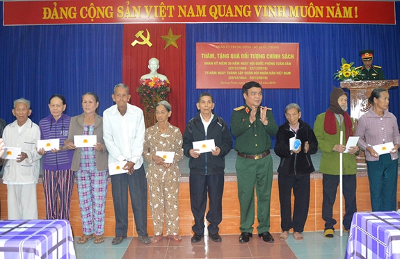 Thượng tướng Lê Chiêm đã ân cần thăm hỏi và trao 20 suất quà tặng các đối tượng chính sách tại xã Tam Phú và xã Tam Thanh (TP Tam Kỳ).