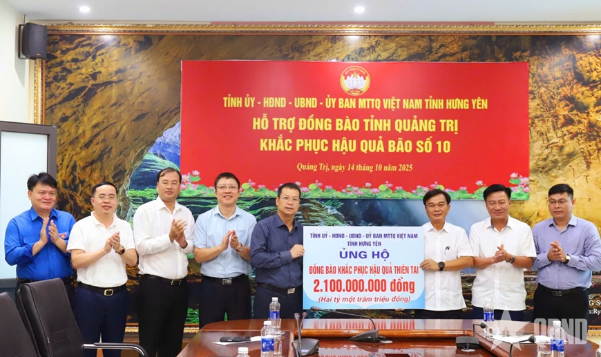 Sau khi nghe báo cáo, Ban Thường vụ Tỉnh ủy Hưng Yên đã có ý kiến chỉ đạo: Đồng ý với đề xuất của Ban Thường trực Ủy ban Mặt trận Tổ quốc Việt Nam tỉnh Hưng Yên về việc hỗ trợ nhân dân các tỉnh khắc phục hậu quả thiên tai năm 2025 với tổng kinh phí 16,6 tỷ đồng, được trích từ nguồn Quỹ cứu trợ của tỉnh do Ủy ban Mặt trận Tổ quốc Việt Nam tỉnh Hưng Yên tham mưu quản lý và sử dụng.