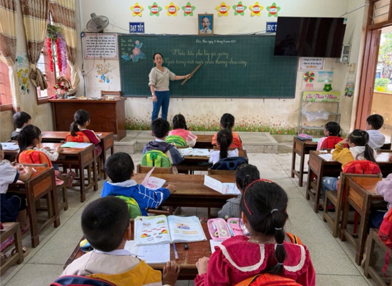 Buổi học đầu tiên sau trận lũ lịch sử của Lớp 1B, Trường Tiểu học Hòa Thịnh.