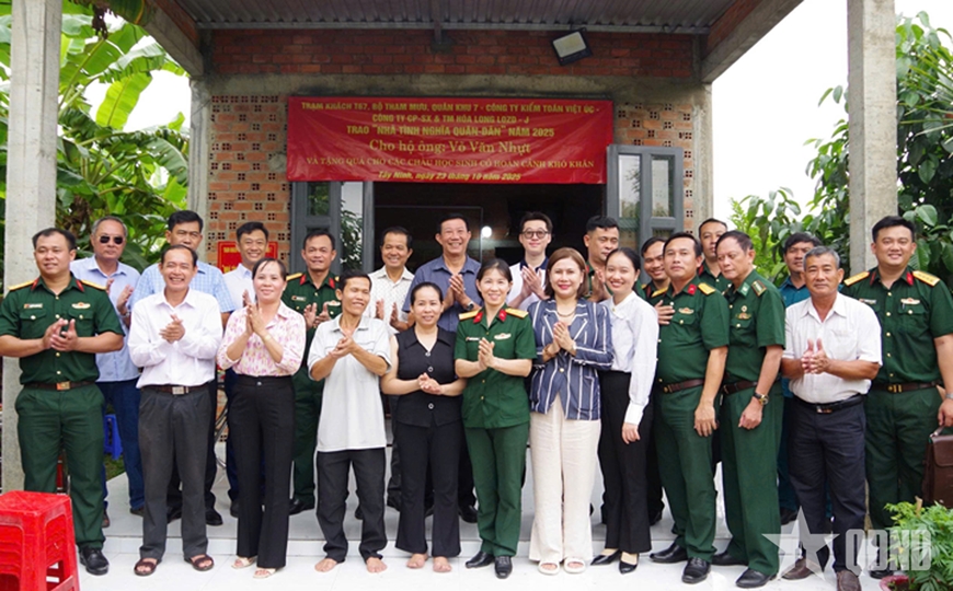 Mới đây, sáng 23-10, tại xã Hiệp Hòa (tỉnh Tây Ninh), không khí rộn ràng, ấm áp lan tỏa khắp xóm nhỏ khi UBND xã phối hợp với Trạm khách T67 (Bộ Tham mưu Quân khu 7) cùng các ban, ngành, đoàn thể tổ chức lễ bàn giao nhà “Tình nghĩa quân – dân” cho gia đình ông Võ Văn Nhựt, có hoàn cảnh khó khăn về nhà ở.