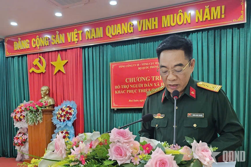 Đại tá Trần Doãn Thoan, Phó tổng giám đốc Tổng công ty 28 chia sẻ: Những món hàng hóa hỗ trợ đến người dân, các đơn vị, nhà trường tại xã Hòa Xuân, Đắk Lắk không chỉ là giá trị vật chất, mà còn là tấm lòng, sự sẻ chia ấm áp của toàn thể cán bộ, công nhân viên, người lao động Tổng công ty 28. Tổng công ty mong rằng sự hỗ trợ này sẽ góp phần giúp người dân vơi bớt gánh nặng lo toan trước mắt, có thêm động lực để khắc phục nhanh hậu quả mưa lũ, sớm ổn định cuộc sống.
