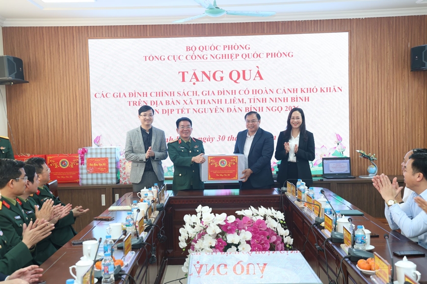 Chiều 30-1, nhân dịp chuẩn bị đón Tết Nguyên đán 2026, đoàn công tác Tổng cục Công nghiệp Quốc phòng do Thiếu tướng Phạm Thanh Khiết, Phó chủ nhiệm, Tham mưu trưởng Tổng cục làm trưởng đoàn, đã thăm, tặng quà Đảng bộ, chính quyền và các đối tượng chính sách, hộ nghèo trên địa bàn xã Thanh Liêm (tỉnh Ninh Bình).