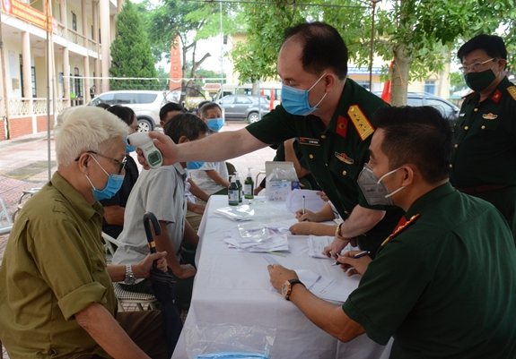 Kiểm tra thân nhiệt và cấp phiếu khám bệnh. |