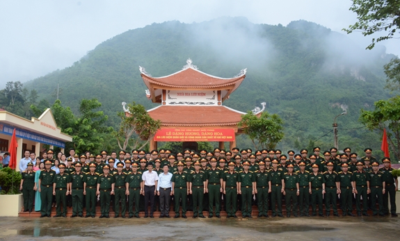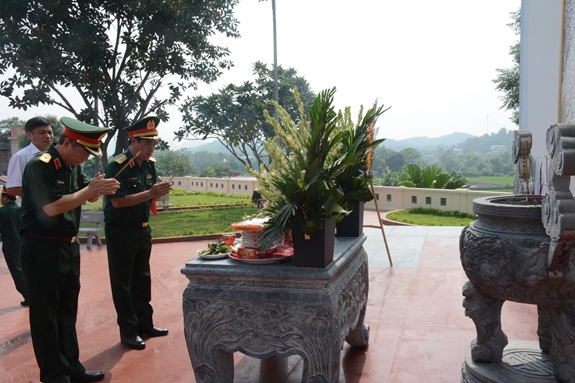 Thiếu tướng Lương Thanh Chương, Phó chủ nhiệm Tổng cục Công nghiệp quốc phòng và Thiếu tướng Nguyễn Đắc Hải, Phó chủ nhiệm Tổng cục Công nghiệp quốc phòng dâng hương tại Khu lưu niệm "Bác Hồ với ngành quân giới Việt Nam". |