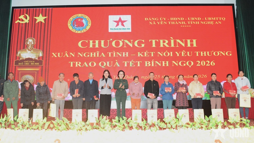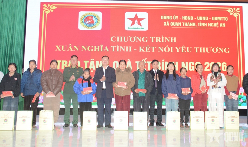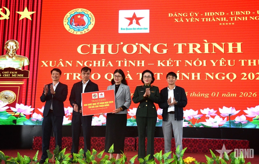 Trong dịp này, Tổng cục Công nghiệp Quốc phòng và Báo Quân đội nhân dân đã ủy quyền cho địa phương trao 1.200 suất quà tặng các gia đình chính sách, hoàn cảnh khó khăn trên địa bàn 9 xã Quan Thành, Yên Thành, Vân Tụ, Vân Du, Hợp Minh, Quang Đồng, Bình Minh, Giai Lạc, Đông Thành (tỉnh Nghệ An). Tổng giá trị đợt trao quà tặng gần 2,5 tỷ đồng.