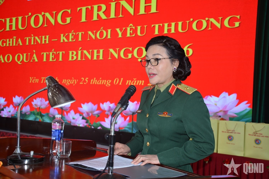 Thay mặt Tổng cục Công nghiệp Quốc phòng, Thiếu tướng Phan Thị Hoài Vân chúc lãnh đạo địa phương cùng bà con nhân dân và gia đình năm mới thật nhiều sức khỏe, hạnh phúc, thành công. Những món quà Tết của Tổng Cục Công nghiệp Quốc phòng và Báo Quân đội nhân dân mong rằng sẽ góp phần nào đó động viên tinh thần, giúp bà con có thêm điều kiện đón Tết cổ truyền của dân tộc với niềm vui tươi, đầm ấm.