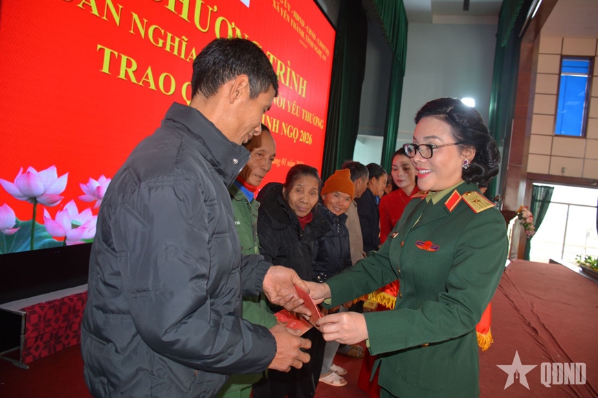 Chia sẻ tại buổi trao quà, Thiếu tướng Phan Thị Hoài Vân cho biết, năm 2025, Tổng cục Công nghiệp Quốc phòng đã hoàn thành toàn diện các mặt công tác, đạt được nhiều kết quả nổi bật, có bước đột phá, định hướng phát triển bền vững, lâu dài cho ngành công nghiệp quốc phòng. Tổng cục Công nghiệp Quốc phòng đã nghiên cứu thiết kế, chế tạo thành công nhiều sản phẩm mới, có tính tích hợp hệ thống, hiện đại, công nghệ cao; sản xuất quốc phòng gắn với phát triển kinh tế, xuất khẩu. Nhiều sản phẩm quốc phòng công nghệ cao đã khẳng định năng lực tự chủ của công nghiệp quốc phòng Việt Nam.