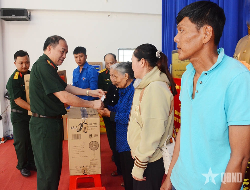 | Đại diện Cục Chính trị tặng quà gia đình chính sách. |