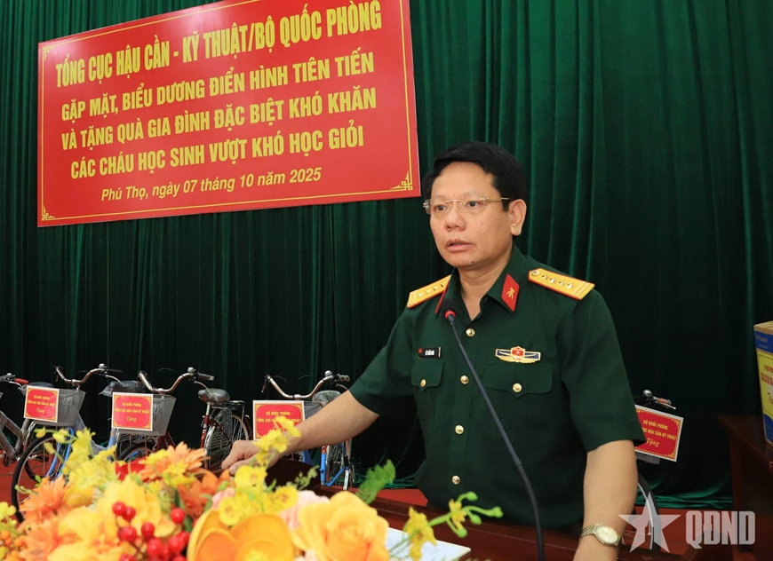 Phát biểu tại buổi gặp mặt, Đại tá Lê Tuấn Anh nhấn mạnh, hội nghị gặp mặt, biểu dương điển hình tiên tiến và tặng quà gia đình đặc biệt khó khăn, các cháu học sinh vượt khó học giỏi là một trong những hoạt động công tác dân vận năm 2025 của Tổng cục HC-KT; thể hiện tình cảm, sự tri ân của cán bộ, chiến sĩ, người lao động Tổng cục HC-KT đối với các tấm gương điển hình tiên tiến trong đồng bào dân tộc thiểu số; gia đình chính sách, gia đình có công với cách mạng, gia đình có hoàn cảnh đặc biệt khó khăn, các cháu học sinh vượt khó vươn lên trong học tập.