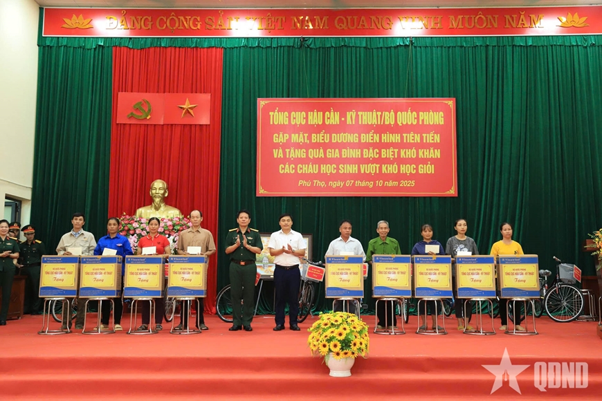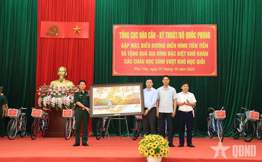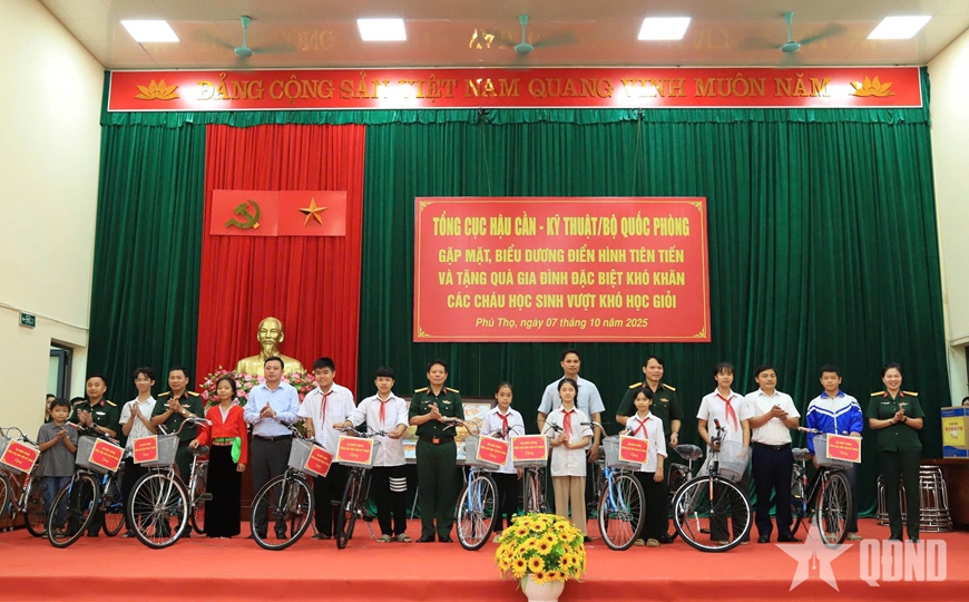 Dịp này, Tổng cục HC-KT đã tặng quà cấp ủy chính quyền địa phương; biểu dương, tặng quà 5 điển hình tiên tiến, trao 10 suất quà tặng gia đình chính sách, gia đình có hoàn cảnh đặc biệt khó khăn và 10 xe đạp tặng các cháu học sinh vượt khó học giỏi.