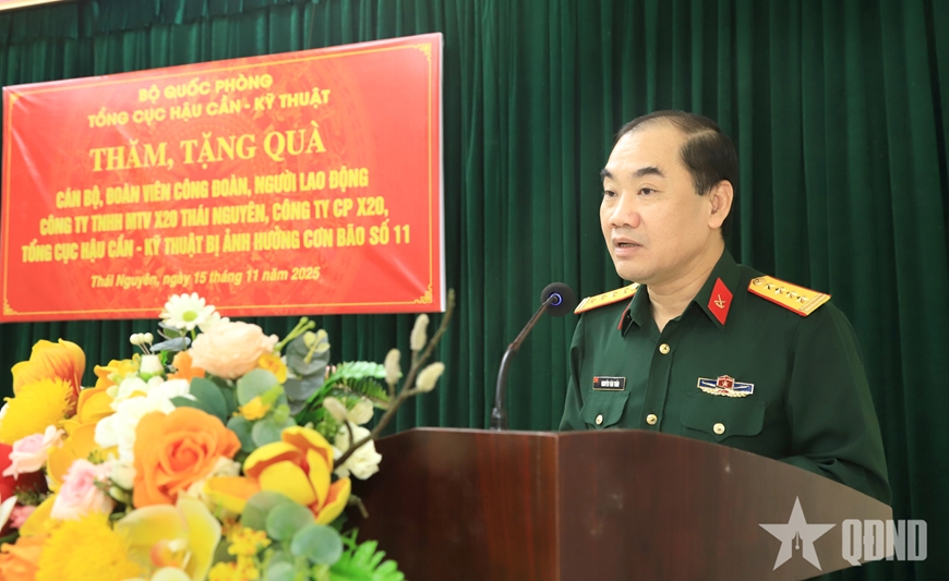 Đoàn công tác của Tổng cục Hậu cần - Kỹ thuật thăm, động viên, trao quà tặng người lao động tại phân xưởng sản xuất Công ty TNHH MTV X20 Thái Nguyên.