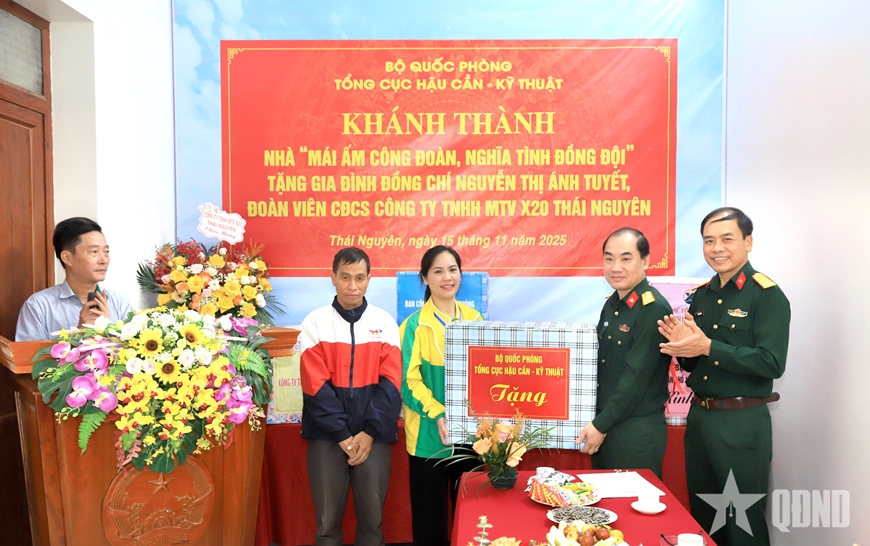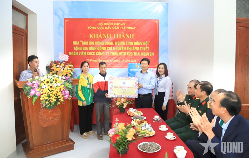 Tại lễ khánh thành và bàn giao nhà, Tổng cục Hậu cần - Kỹ thuật đã trao quyết định hỗ trợ và quà của Ban Công đoàn Quốc phòng tặng gia đình. Cùng với đó, Tổng cục Hậu cần - Kỹ thuật, Công ty cổ phần X20, Công đoàn Công ty TNHH MTV X20 Thái Nguyên và chính quyền địa phương trao nhiều phần quà thiết thực tặng gia đình đồng chí Nguyễn Thị Ánh Tuyết.