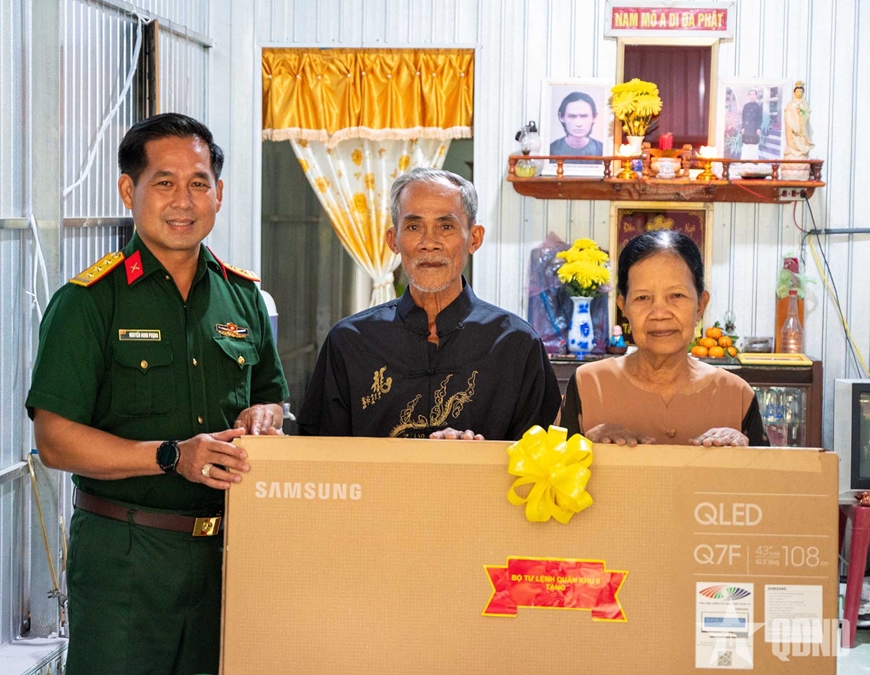 Dịp này, lãnh đạo Bộ CHQS tỉnh An Giang và cấp ủy, chính quyền địa phương trao tặng nhiều phần quà thiết thực, động viên gia đình đồng chí Nguyễn Văn Nhỏ sớm ổn định sinh hoạt.