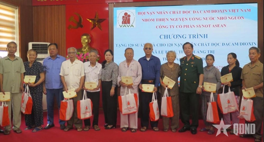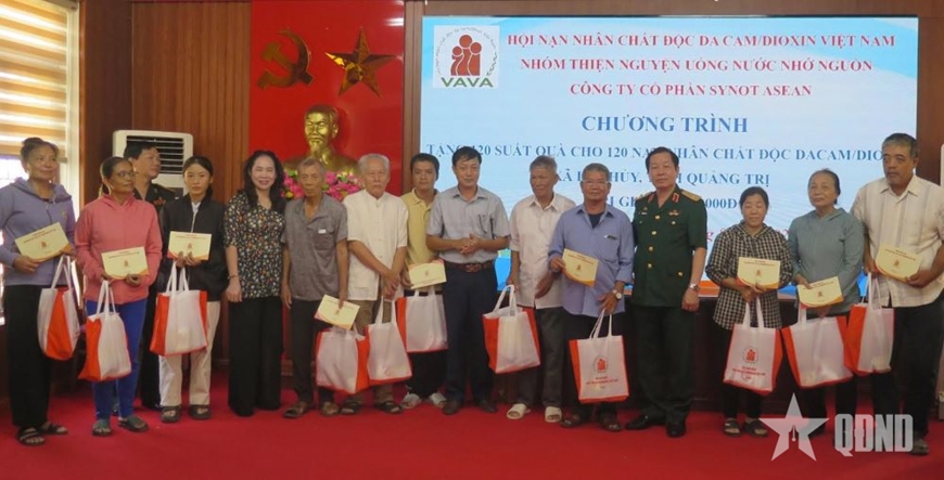 Tại tỉnh Quảng Trị, đoàn công tác Trung ương Hội và các nhà tài trợ đã trao tổng cộng 120 suất quà (1,2 triệu đồng/suất, gồm tiền và hiện vật) tổng trị giá 144 triệu đồng, tặng nạn nhân chất độc da cam xã Lệ Thủy.