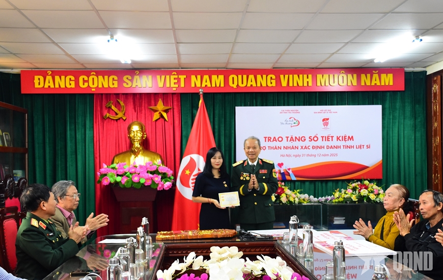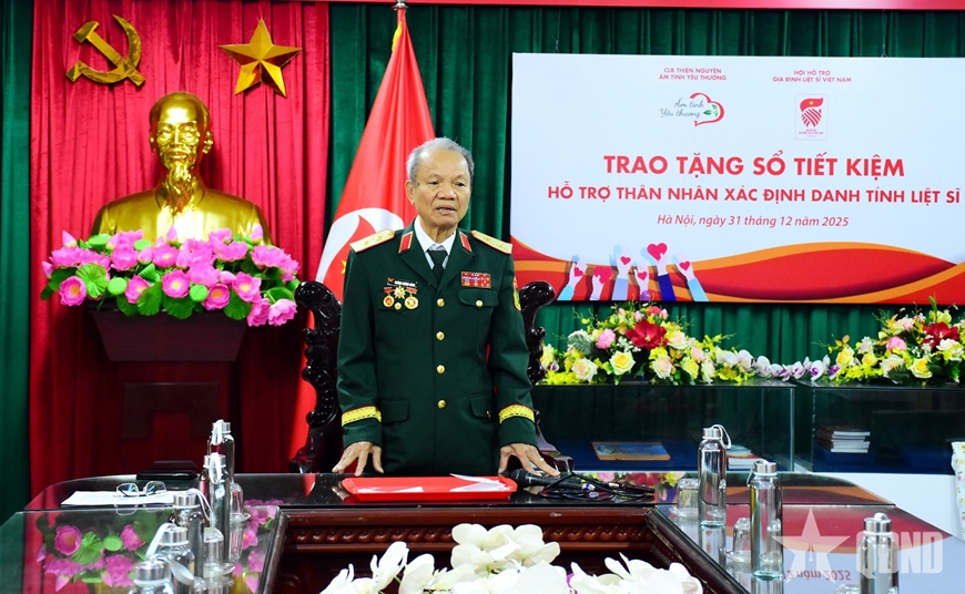 Ngày 31-12, tại Hà Nội, Hội Hỗ trợ gia đình liệt sĩ Việt Nam tổ chức trao tặng sổ tiết kiệm hỗ trợ thân nhân các gia đình liệt sĩ. Trung tướng Hoàng Khánh Hưng, Chủ tịch Hội Hỗ trợ gia đình liệt sĩ Việt Nam chủ trì chương trình trao tặng.