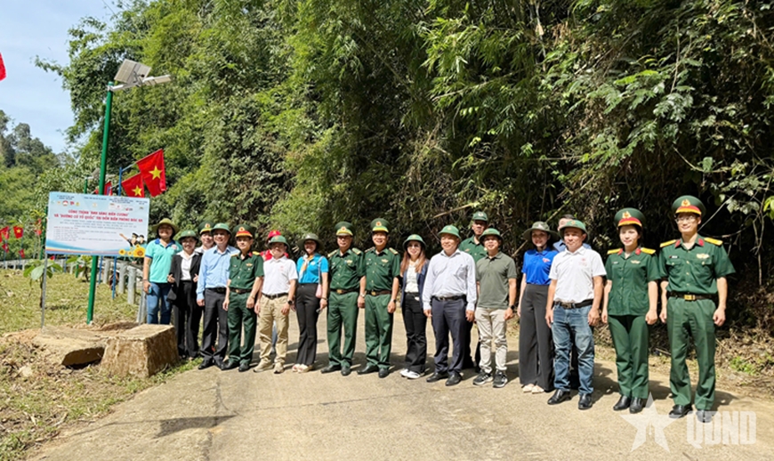 Cụ thể, công trình “Ánh sáng biên cương” gồm 26 trụ đèn, 38 đèn năng lượng mặt trời; công trình “Đường cờ Tổ quốc” được xây dựng với 140 cột cờ dọc tuyến đường khu vực Đồn và địa bàn phụ trách.