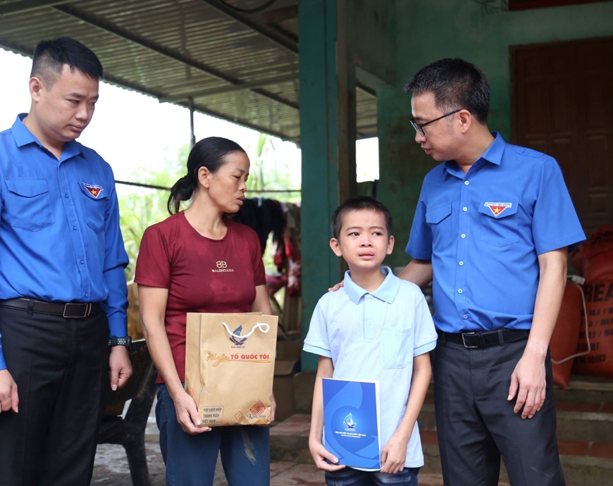 Đoàn công tác trao quà tặng với tổng trị giá gần 800 triệu đồng, gồm tiền mặt và vật phẩm thiết yếu, nhằm chia sẻ khó khăn, tiếp thêm động lực để đoàn viên, thanh thiếu nhi và các gia đình chịu thiệt hại do bão lũ sớm vượt qua khó khăn, ổn định cuộc sống.
