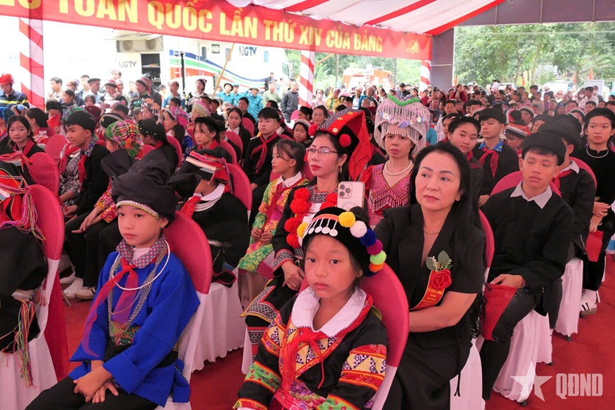 Ngày khởi công, hàng trăm người dân, thầy cô giáo và học sinh Sơn Vĩ đã có mặt trong không khí rộn ràng, hân hoan. Tiếng trống hội vang vọng giữa núi rừng như đánh thức niềm tự hào và khát vọng vươn lên của vùng đất biên cương.