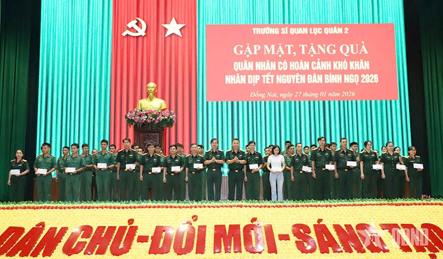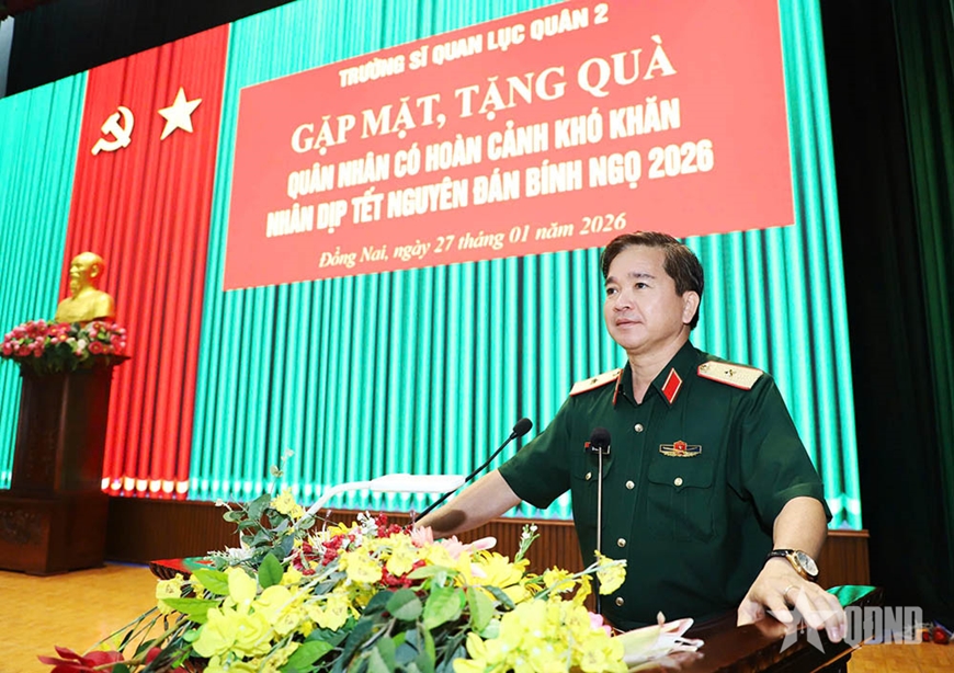 Chiều 27-1, Đảng ủy, Ban giám hiệu Trường Sĩ quan Lục quân 2 tổ chức gặp mặt, động viên, trao quà tặng quân nhân, công nhân viên chức quốc phòng có hoàn cảnh đặc biệt khó khăn.